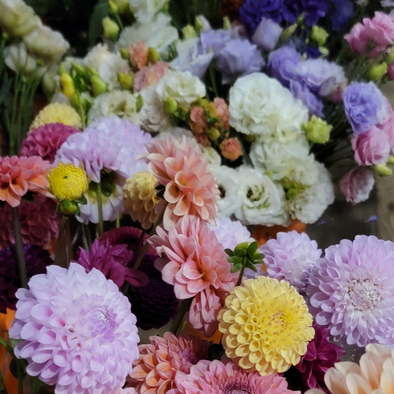 Bucket of fresh, seasonal blooms allowing you the flexibility and enjoyment of arranging your own flowers. Each bucket contains 40-50 stems of premium flowers paired with minimal filler or greenery - enough to create 2-3 bouquets depending on the size.